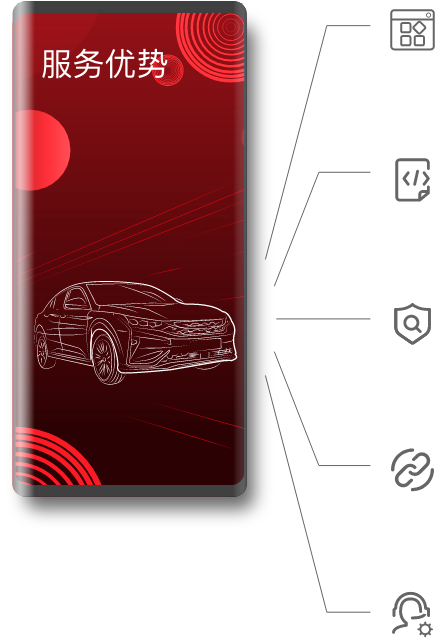 支持多形态多业务场景接入,全渠道引流获客,全方位营销策划支持。覆盖10万+ 主流商品及车后服务、部署2万+线下门店,形成完整的用车服务生态。